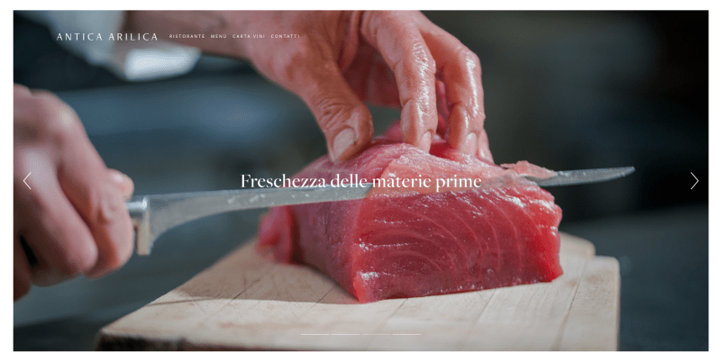 1. Visual ordinato e curato in ogni dettaglio, con elementi grafici e colori studiati ad hoc, ma soprattutto immagini professionali (il fotografo sarà il tuo miglior investimento). Un sito con lo sfondo viola, le immagini sfuocate o piccole, e le scritte dorate, ad esempio, risulta illeggibile oltre ad essere un pugno in un occhio. L’estetica è fondamentale, e prima di iniziare un sito bisogna porsi delle domande: quali sono le caratteristiche dell’azienda? Che tipo di messaggio/sensazione si vuole trasmettere? Uno sfondo bianco, un logo semplice e pulito, fotografie belle, luminose e con i colori giusti, il tutto accompagnato da testi in nero o grigio, sono elementi che trasmettono eleganza, armonia, ordine, pulizia e stile.